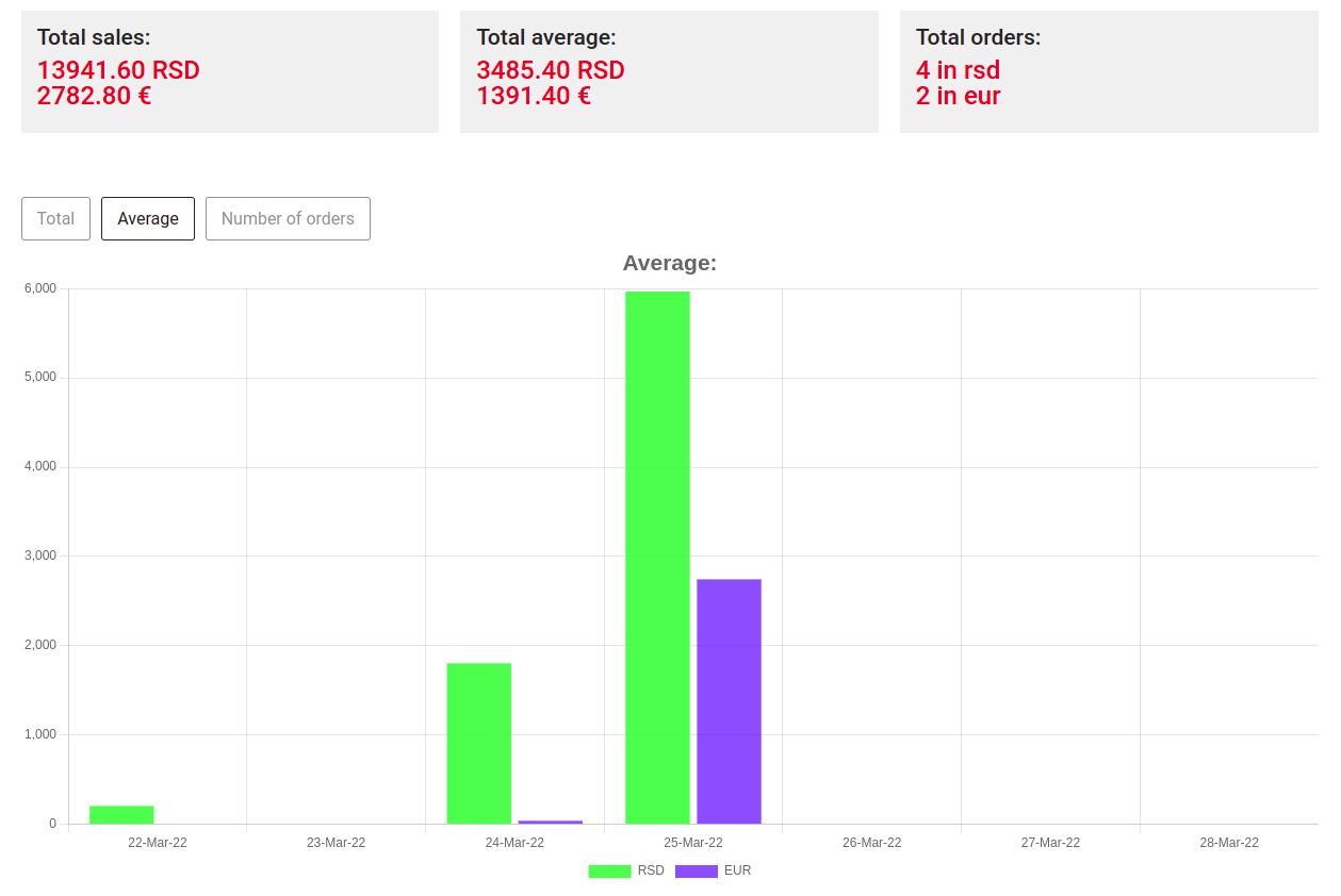 In this way, sales are monitored, and statistics will be displayed at the bottom of the page (picture). The display of statistics can be adjusted on a yearly, monthly and daily basis. In addition, all time or sales can be displayed only for a certain period. Tracking your partner is also possible through a group of coupons, with which you connect him.