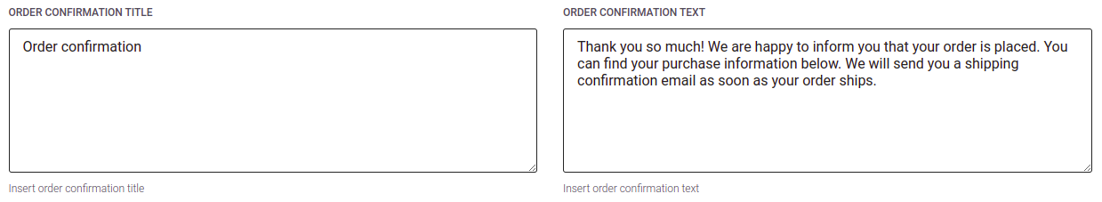 In this section enter legal info, you have the option to change the subject and text of the email. Basic information about the store, which will be displayed in emails for customers. You have the ability to change the subject and text of the email. Below is an example of notifying the customer of an order confirmation.