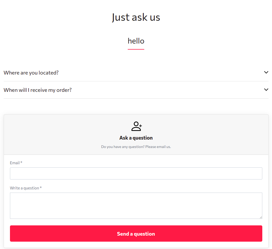 Your customers may have questions about your store or specific product and that is why we have created a FAQ - Frequently asked questions section. Here your customers can post questions and you can answer them so that all other customers can easily see them. FAQ is defined as a block and can be added to any page. This block may display just some questions and answers or can display all the questions and answers. We encourage you to create one page that will be called FAQ and will display all the answers and questions and add most important questions to your homepage.